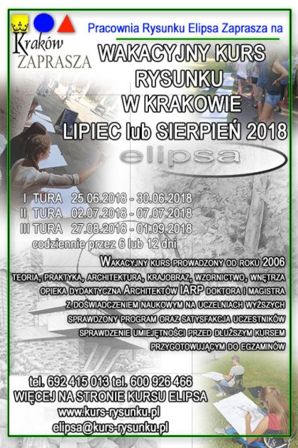 WAKACYJNY KURS RYSUNKU ELIPSA KRAKÓW - EDYCJA 2018