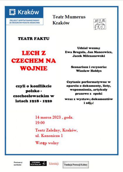 Jest to jednocześnie inauguracja nowego projektu Teatru Mumerus, czyli Teatru Faktu, w ramach którego prezentować będziemy dokumenty, zdjęcia, wspomnienia i relacje dotyczące budzących kontrowersje wydarzeń z nieodległej przeszłości. W następnej kolejności opowiemy o zajęciu Zaolzia przez Polskę w 1938, potem o morderstwie Jana Gerharda w 1971 r. i sprawie braci Marchwickich.