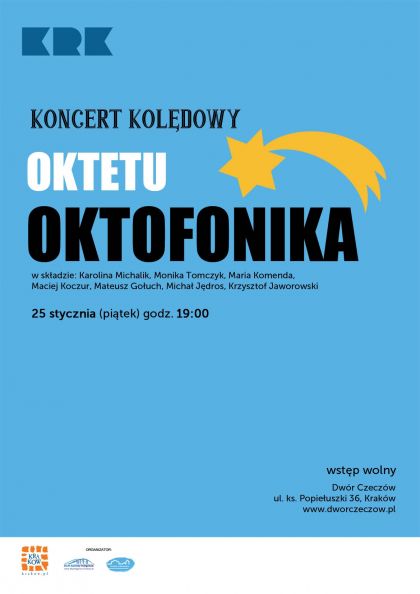 W Sali Balowej Dworu Czeczów odbędzie się koncert kolęd w wykonaniu oktetu Oktofonika w składzie: Karolina Michalik, Monika Tomczyk, Maria Komenda, Maciej Koczur, Mateusz Gołuch, Michał Jędros, Krzysztof Jaworowski.