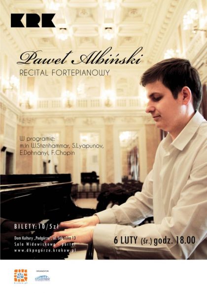 Paweł Albiński po raz kolejny również zaskoczy szeroką publiczność swoimi muzycznymi znaleziskami. Tym razem po raz pierwszy w Polsce wykona utwory fortepianowe W.Stenhammara i S.Lyapunova. Będzie to premierowe - długo oczekiwane wykonanie tych kompozytorów w Krakowie.