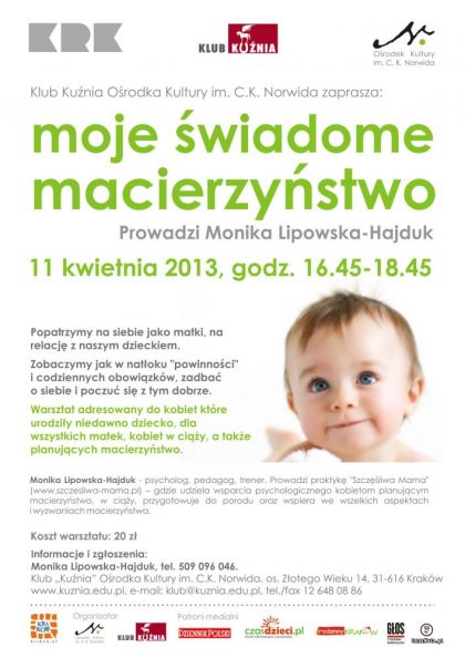 Będziemy mogły podzielić się swoimi obawami, trudnościami, a także uzmysłowić sobie piękne, ważne chwile i ogrom radości płynący ze świadomego bycia z dzieckiem.