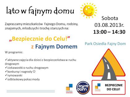 W najbliższy weekend bawimy się z Bezpiecznie do celu, którego założeniem jest kształtowanie prawidłowych nawyków dzieci i młodzieży na drodze. Przez zabawę, konkursy, prezentacje uczymy się, jakie zachowania na drodze i nie tylko będą bezpieczne dla nas i współuczestników.