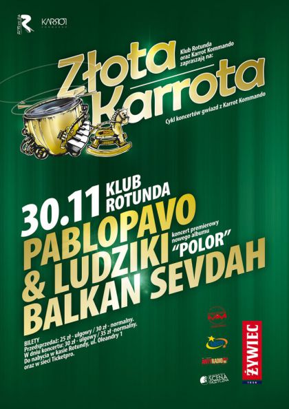 Klub Rotunda oraz Karrot Kommando zapraszają na koncert z cyklu "Złota Karrota", wystąpią Pablopavo i Ludziki + Balkan Sevdah. Oficjalna premiera nowej płyty Pablopavo i Ludziki "Polor".