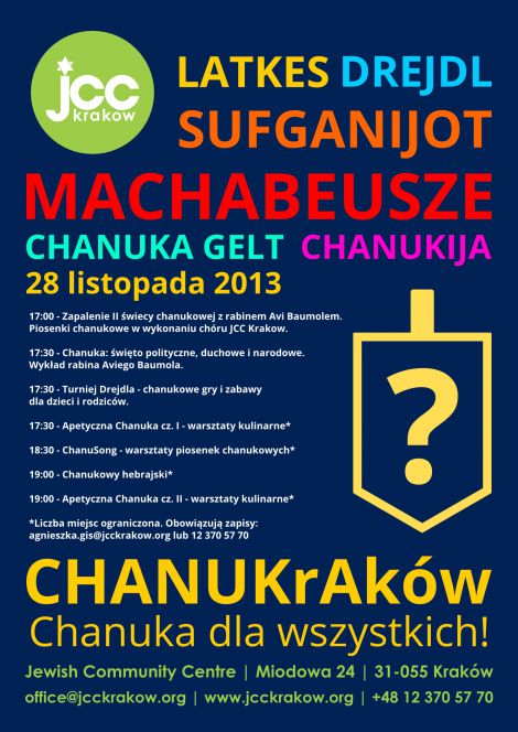 17:30 - Turniej Drejdla - chanukowe gry i zabawy dla dzieci i rodziców.