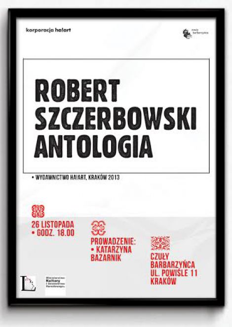 Korporacja Ha!art zaprasza na spotkanie z wokół "Antologii" Roberta Szczerbowskiego, stanowiącej zbiór trzech utworów, układających się w logiczne ogniwa literackiego rozwoju autora. Pozycja ukazała się w serii Liberatura podczas tegorocznej Ha!wangardy.