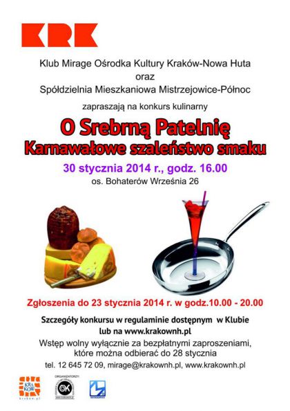W trakcie wydarzenia poznamy laureatów symbolicznej srebrnej patelni, a osoby te otrzymają nagrody. Współorganizatorem wydarzenia jest Spółdzielnia Mieszkaniowa Mistrzejowice-Północ.