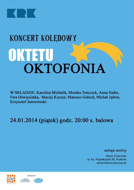 W Sali Balowej Dworu Czeczów odbędzie się koncert kolęd w wykonaniu oktetu Oktofonika w składzie: Karolina Michalik, Monika Tomczyk, Maria Komenda, Maciej Koczur, Mateusz Gołuch, Michał Jędros, Krzysztof Jaworowski.