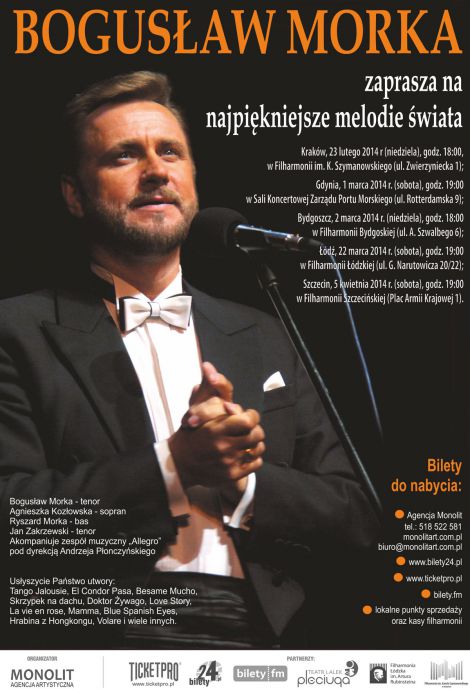Koncert Bogusława Morki w Krakowie odbędzie się 23 lutego 2014 r. w Filharmonii im. K. Szymanowskiego (ul. Zwierzyniecka 1) o godz. 18.00.