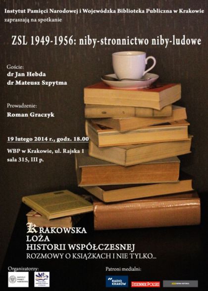 „ZSL 1949-1956: niby-stronnictwo niby-ludowe” spotkanie z cyklu „Krakowska Loża Historii Współczesnej” – Kraków, 19 lutego 2014 r.