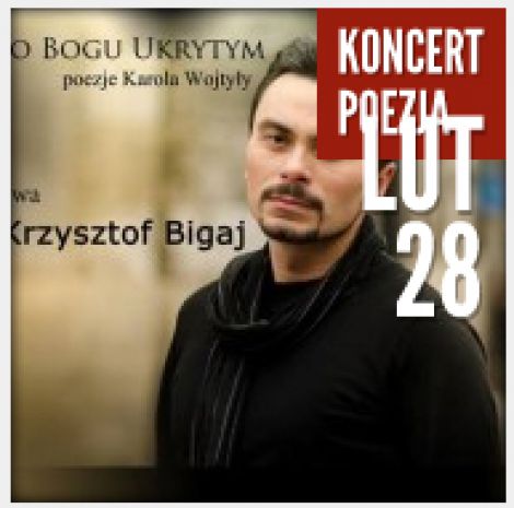 Oczekując na kanonizację bł. Jana Pawła II artyści przeprowadzą was po najważniejszych tematach poezji Karola Wojtyły: miłość, pokora, śmierć, zmartwychwstanie, Eucharystia. Koncert promuje płytę ze śpiewaną poezją Karola Wojtyły, pt. „Pieśni o Bogu Ukrytym”. Twórcą albumu i wykonawcą programu jest Krzysztof Bigaj, który nie tylko zaśpiewa wiersze, ale również przedstawi fragmenty utworów dramatycznych Wojtyły, takich jak „Brat naszego Boga” czy „Przed sklepem Jubilera”. Autor pragnie w ten sposób ukazać mniej znane, artystyczne oblicze bł. Jana Pawła II.