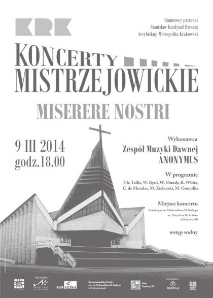 Z cyklu Koncerty Mistrzejowickie serdecznie zapraszamy na koncert pn. MISERERE NOSTRI do Kościoła pw. Św. M. M. Kolbego w Mistrzejowicach.
