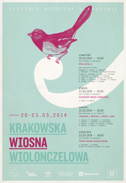 Początek wiosny Akademia Muzyczna przywita czterodniowym świętem wiolonczeli. Cykl koncertów zatytułowany „Krakowska Wiosna Wiolonczelowa” realizowany będzie w dniach 20-23 marca w Auli „Florianka” oraz w Sali Koncertowej Akademii Muzycznej w Krakowie.
