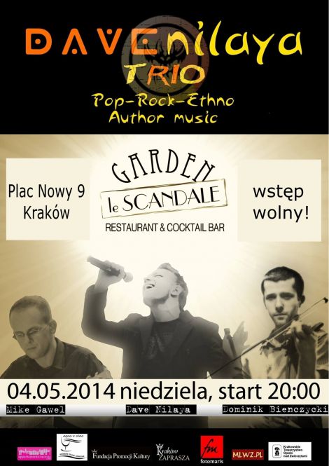 W niedzielę 4 maja Garden Le Scandale zaprasza na koncert włosko-polskiej formacji DAVE NILAYA TRIO.