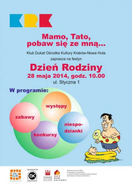 Klub Dukat Ośrodka Kultury Kraków-Nowa Huta organizuje 28 maja 2014 r. o godz. 10.00 plenerową imprezę rodzinną, która odbędzie się w ramach projektu Od potrzeby do pomysłu. Diagnoza potencjału środowiska.