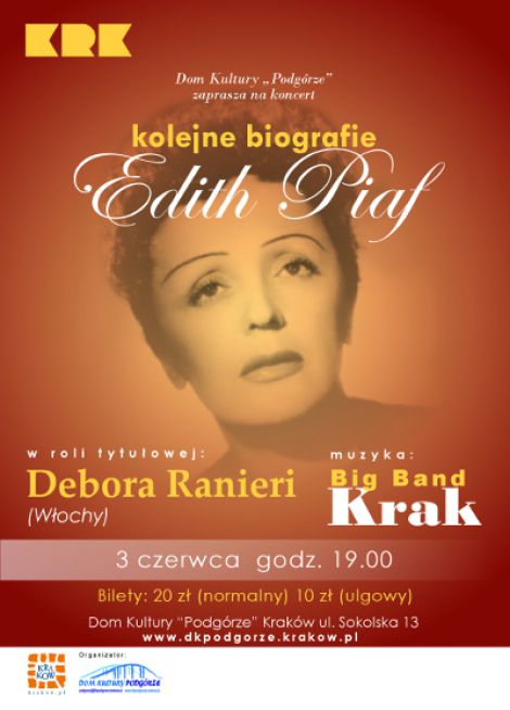 Koncert Big Band Krak „Kolejne biografie Edith Piaf" w roli tytułowej Debora Ranieri (Włochy)