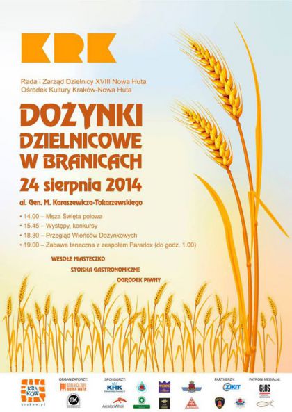 Podtrzymując wielowiekową tradycję, w niedzielę 24 sierpnia br., mieszkańcy nowohuckich osiedli zbiorą się, by wspólnie uczcić tegoroczne zbiory. W korowodzie, który wyruszy o godz. 13.30 sprzed Klubu Herkules w Branicach, zaproszeni goście, gospodarze Dożynek oraz mieszkańcy przejdą na teren zielony przy ul. gen. M. Karaszewicza-Tokarzewskiego, gdzie odbędą się dalsze uroczystości. Na wydarzenie zapraszają organizatorzy: Rada i Zarząd Dzielnicy XVIII Nowa Huta oraz Ośrodek Kultury Kraków-Nowa Huta.