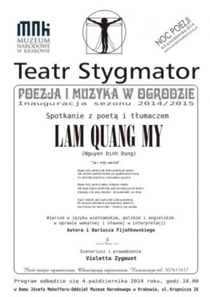 W programie poezja wietnamska ze specjalnym udziałem poety i tłumacza Lam Quang My. Scenariusz i prowadzenie Violetta Zygmunt.
