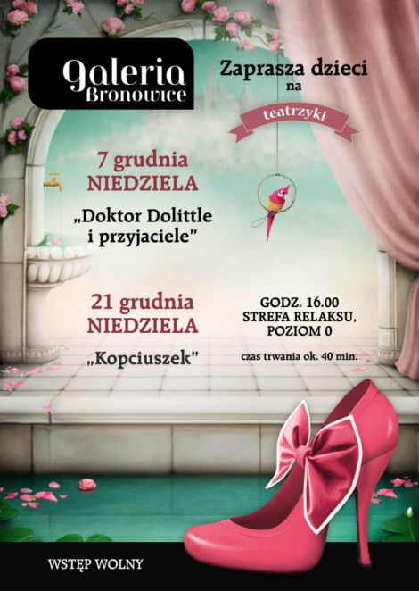 Teatrzyk „Doktor Dolittle i przyjaciele” odbędzie się w niedzielę 7 grudnia o godz. 16:00 w strefie relaksu na parterze Galerii. Potrwa około 40 min.