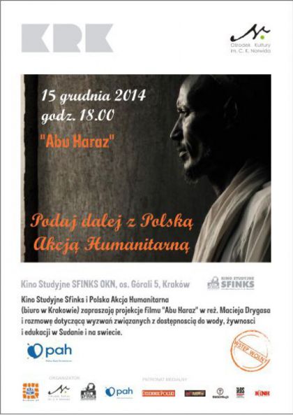 Kino Studyjne Sfinks i Polska Akcja Humanitarna (biuro w Krakowie) zapraszają projekcje filmu "Abu Haraz" w reż. Macieja Drygasa i rozmowę dotyczącą wyzwań związanych z dostępnością do wody, żywności i edukacji w Sudanie i na świecie.