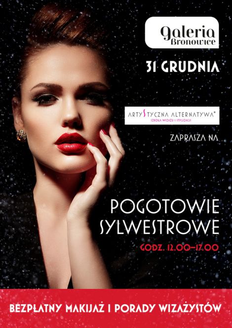 Wyraziste usta, podkreślone oko, brokat i odważne cieniowanie... w sylwestrowym makijażu wszystko jest możliwe. Przekonają się o tym panie, które odwiedzą Galerię Bronowice w najbliższą środę w godz. 12-17.00. W ramach Pogotowia Sylwestrowego sztab wizażystów ze Szkoły Stylizacji i Wizażu „Artystyczna Alternatywa” wykona wszystkim chętnym piękne i wyjątkowe makijaże.