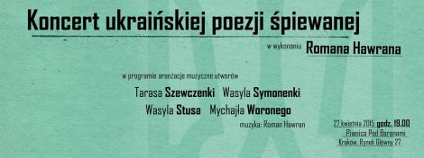 Serdecznie zapraszamy na koncert ukraińskiej poezji śpiewanej w aranżacjach i interpretacjach Romana Hawrana.