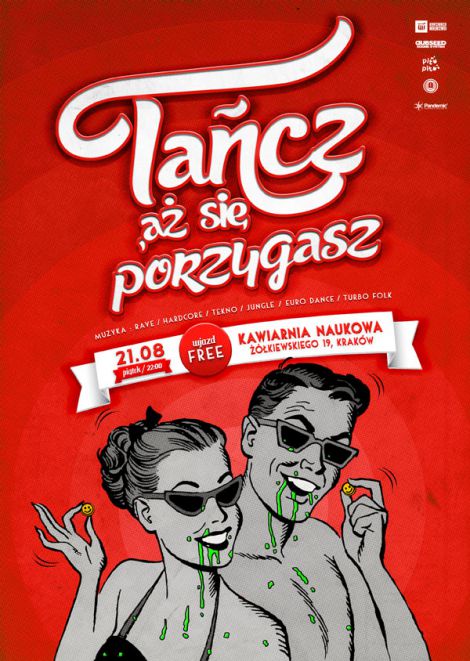 Temat jest taki, że w najbliższy piątunio 21.08 kolejny raz rozewrą się gościnne bramy obiektu pod adresem Żółkiewskiego 19. Montujemy imprezę taneczną w przekrojowych rytmach. Gatunków będzie tyle co vodki w Rosji, czyli od chuja dużo, więc nawet nie wymieniamy. Ale zamiast tego polecamy spojrzeć na lajnap i sprawdzić profile zaproszonych gości.