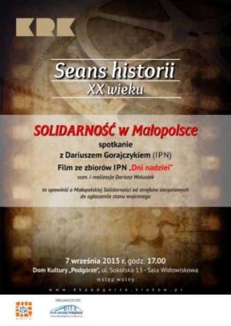 Seans historii XX w SOLIDARNOŚĆ w Małopolsce - projekcja filmu ze zbiorów IPN : „Dni nadziei” / scen. i realizacja Dariusz Walusiak