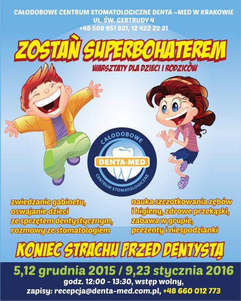 Całodobowe Centrum Stomatologiczne DENTA - MED w Krakowie zaprasza wszystkie dzieci i ich rodziców na BEZPŁATNE warsztaty dentystyczne połączone z zabawą w grupie.