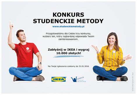 Jesteś studentem i masz pomysł na produkt, który mógłby trafić do sprzedaży w sklepach IKEA? Weź udział w konkursie „Produkt jakiego jeszcze nie było”, w ramach którego IKEA zaprojektuje, wyprodukuje i wprowadzi do sprzedaży przedmiot sygnowany nazwiskiem pomysłodawcy. Autor najlepszego konceptu otrzyma też 10 tys. zł, możliwość udziału w procesie produkcji oraz staż w dziale sprzedaży jednego ze sklepów. Zgłoszenia przyjmowane są do 31 stycznia 2016 r.