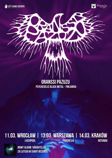 Fiński, Oranssi Pazuzu, jeden z najbardziej innowacyjnych zespołów współczesnego black metalu wystąpi w krakowskiej Rotundzie 14 marca. Jeśli przyjąć, że black metal od kilku lat ponownie rozkwita i zaskakuje swymi kolejnymi mutacjami, to Oranssi Pazuzu są bez wątpienia jednymi ze sprawców tego stanu rzeczy. Istniejąca od niespełna dekady formacja z Tampere i Seinäjoki, wraz z każdym kolejnym albumem poszerza granice gatunku o kolejne wymiary, będąc zarazem główną siłą napędową jego psychodelicznego odłamu. Systematycznie zwiększając swą siłę oddziaływania, począwszy od debiutu „Muukalainen Puhuu” (2009) i zwracając uwagę coraz liczniejszych fanów w rodzimej Finlandii oraz poza jej granicami, grupa zaistniała na międzynarodowej arenie dzięki wydanemu przed trzema laty albumowi „Valonielu”. Zderzenie blackmetalowej surowości z astronomicznym rozmachem space rocka wprawiło w zachwyt słuchaczy pod każdą szerokością geograficzną. - Przez sporą część czasu trwania płyty nie będziecie mieli zielonego pojęcia, co dzieje się z waszymi narządami słuchu. I właśnie to jest OK – pisał w recenzji „Valonielu” opiniotwórczy portal CVLT Nation.