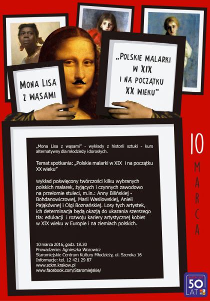 Wykład poświęcony twórczości kilku wybranych polskich malarek, żyjących i czynnych zawodowo na przełomie stuleci, m.in.: Anny Bilińskiej - Bohdanowiczowej, Marii Wasilowskiej, Anieli Pająkównej i Olgi Boznańskiej. Losy tych artystek, ich determinacja będą okazją do ukazania szerszego tła: edukacji i rozwoju kariery artystycznej kobiet w XIX w. w Europie i na ziemiach polskich.