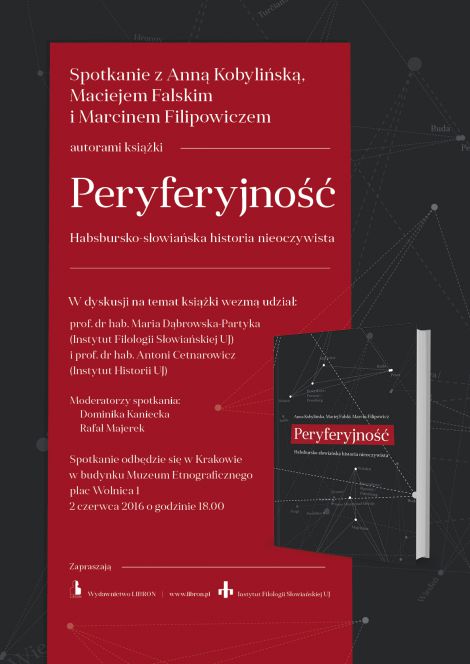 Wydawnictwo Libron oraz Instytut Filologii Słowiańskiej UJ zapraszają na spotkanie z Anną Kobylińską, Maciejem Falskim oraz Marcinem Filipowiczem, autorami książki pt. „Peryferyjność. Habsbursko-słowiańska historia nieoczywista”