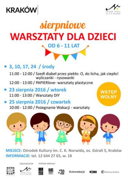 >>3, 10, 17, 24 sierpnia 2016 (środy), godz. 11.00-12.00<<