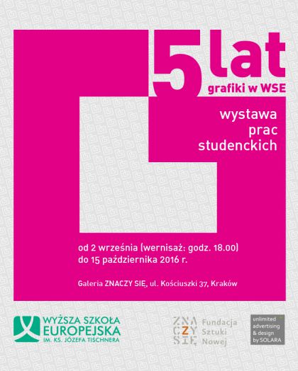 zapraszamy na wyjątkową wystawę „5 lat grafiki w WSE”, która odbędzie się z okazji pięciolecia tego kierunku w Wyższej Szkole Europejskiej im. ks. Józefa Tischnera w Krakowie.