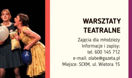 Zapraszamy młodzież gimnazjalną i licealną do udziału w Warsztatach Teatralnych.