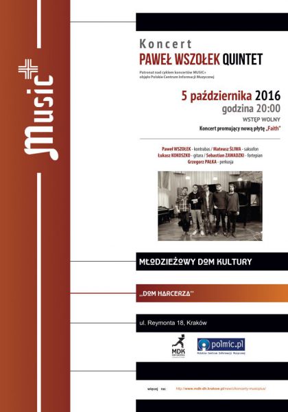 Koncert odbędzie się 5 października br. o godzinie 20.00 w Młodzieżowym Domu Kultury „Dom Harcerza”, ul. Reymonta 18.