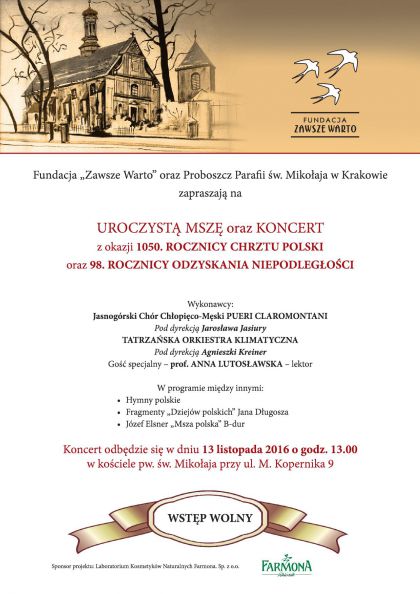Zapraszamy serdecznie na mszę św. oraz koncert upamiętniający