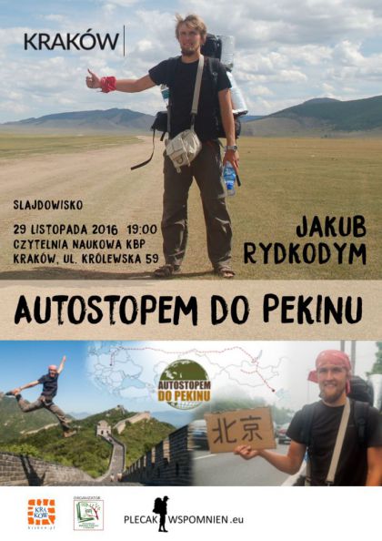 Zapraszamy 29 listopada o godzinie 19:00 na slajdowisko "Autostopem do Pekinu". Spotkanie poprowadzi Jakub Rydkodym - podróżnik i autor bloga Plecak Wspomnień