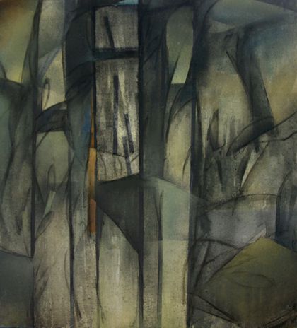„Kokornakowy blues – to symboliczna nazwa motywów zielnikowych, pośród których dominuje kokornak. W letnie upalne dni jego gigantyczne liście tworzą gęstą powłokę altany, jakby chłodnej jaskini, w której można się schronić przed promieniami słonecznymi. Kokornak tworzy swoje formy biologiczne z rozmachem, który inspiruje do ekspresyjnych i szkicowych, niewyspekulowanych działań malarskich”. Lucjan Orzech