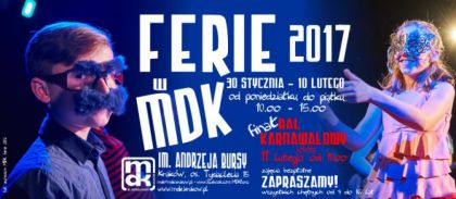Serdecznie zapraszamy dzieci i młodzież do spędzenia ferii w MDK im. Andrzeja Bursy