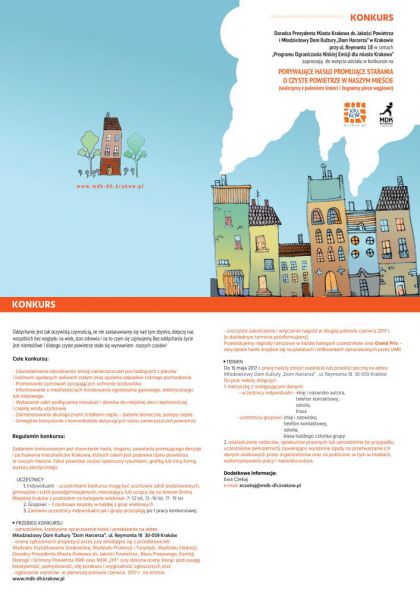 Szczegółowe informacje, regulamin i karta zgłoszenia na: http://www.mdk-dh.krakow.pl/konkursy/594-konkurs-ekologiczny