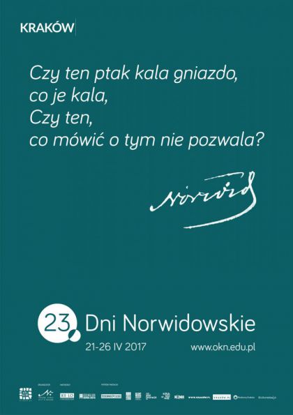 W dniach 21-26 kwietnia 2017 r. w Krakowie odbędą się 23. Dni Norwidowskie organizowane przez Ośrodek Kultury im. C. K. Norwida we współpracy z XII Liceum Ogólnokształcących im. C. K. Norwida. Festiwal ma na celu przybliżenie twórczości tego wybitnego, wszechstronnego i ponadczasowego artysty - poety, prozaika, dramatopisarza, rzeźbiarza, malarza i rysownika. W przestrzeni miasta pojawią się plakaty z cytatami norwidowskimi, odsyłające do znaczeń ważnych także dziś.