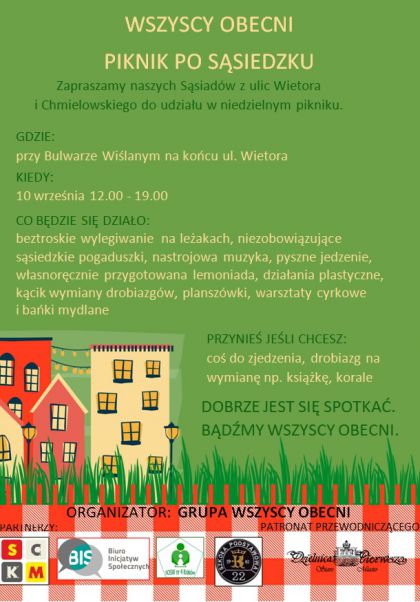 Mijamy się codziennie na chodniku, wymieniamy uprzejmości na schodach, a prawie zupełnie się nie znamy. Dlatego zapraszamy Was do udziału we wspólnym pikniku naszych dwóch ulic - Wietora i Chmielowskiego.