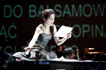 Bezprecedensowe wykonanie koncertów fortepianowych z wyeliminowaną partią fortepianu. W spektaklu „Chopin bez fortepianu" Barbara Wysocka przy akompaniamencie orkiestry symfonicznej wykonuje aktorski ekwiwalent obu koncertów fortepianowych Fryderyka Chopina.