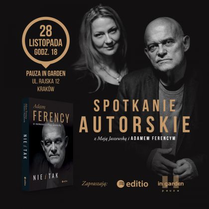 W najbliższy wtorek 28 listopada o godz. 18 w Pauza In Garden ul. Rajska 12) w Krakowie odbędzie się spotkanie autorskie z okazji premiery książki "Nie i Tak", które spędzimy w towarzystwie niezwykłych gości: Adama Ferencego, wybitnego aktora, i Mai Jaszewskiej, cenionej dziennikarki.
