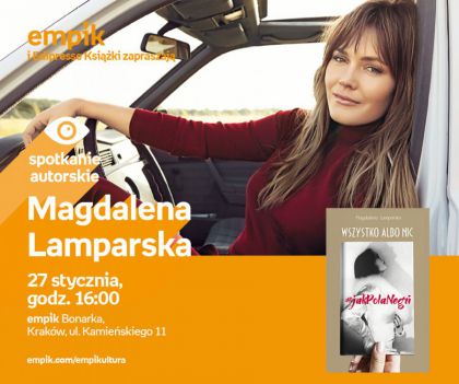Z Polą Negri – hollywoodzką gwiazdą, która sto lat temu rzuciła świat na kolana, łączy ją zawód, pracowitość i odwaga sięgania po nieosiągalne. Magda Lamparska zaprasza Polę do swojego świata, mówiąc: niejednego chciałabym się od ciebie nauczyć. Wraz z autorką cofniemy się w czasie, by zrozumieć fenomen Negri, pierwszej polskiej celebrytki w historii światowego showbiznesu - już podczas spotkania z okazji premiery książki „Wszystko albo nic. #jak Pola Negri” (Edipresse Książki), które odbędzie się 27 stycznia w salonie Empik Bonarka.