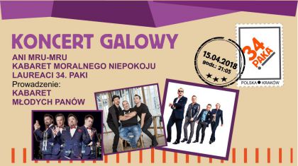 Podsumowanie 34. PAKI – wieczór najnowszych i najbardziej utytułowanych laureatów PAKI. Zaprezentują się zarówno Ci świeżo upieczeni, jak i zdobywcy najwyższych laurów PAKI – Grand Prix sprzed lat: Kabaret Moralnego Niepokoju i Kabaret Ani Mru-Mru . Zobaczymy skecze premierowe i te, za które jury pakowskie przyznało GRAND PRIX lata temu. Razem, wspólnie z widzami przed telewizorami zobaczymy na żywo defiladę skeczy największych przodowników kabaretu. Całość poprowadzą dumni laureaci PAKI – Kabaret Młodych Panów.