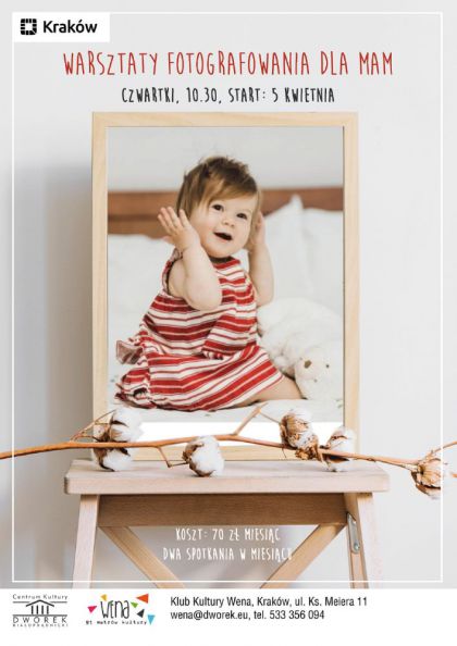 Rozpoczynamy kurs fotografii dla rodziców z dziećmi. Dwa razy w miesiącu będziemy się spotykać na warsztatach z doświadczoną fotografką Joanną Kucharską, specjalizującą się w fotografowaniu dzieci. Prowadząca kolejno porusza będzie kwestie fotografii portretowej z uwzględnieniem specyfiki fotografowania dzieci. Każde zajęcia trwać będą 1-1,5h w zależności od cierpliwości modeli. Koszt zajęć 70zł/osoba/miesiąc.