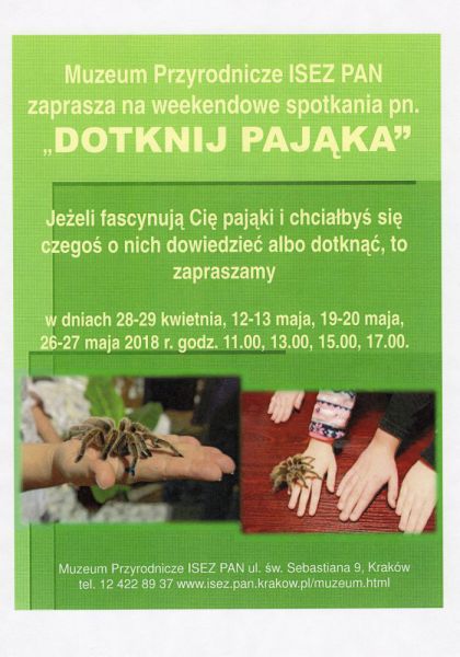 | DOTKNIJ PAJĄKA - OFERTA WEEKENDOWA MUZEUM PRZYRODNICZEGO ISEZ PAN |