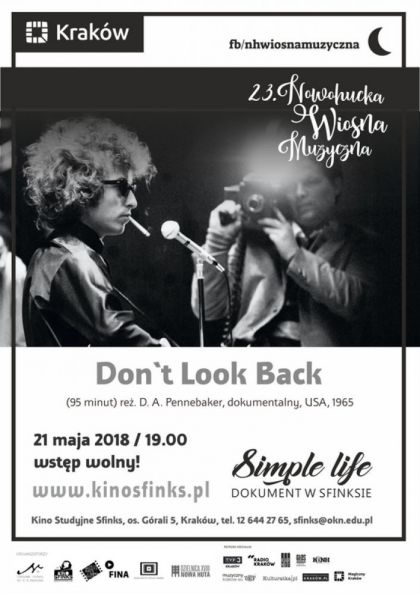 Pokaz filmu pt. „Don`t Look Back” w reżyserii D. A. Pennebakera. Majowy seans jest wydarzeniem towarzyszącym 23. Nowohuckiej Wiośnie Muzycznej. Wstęp wolny.